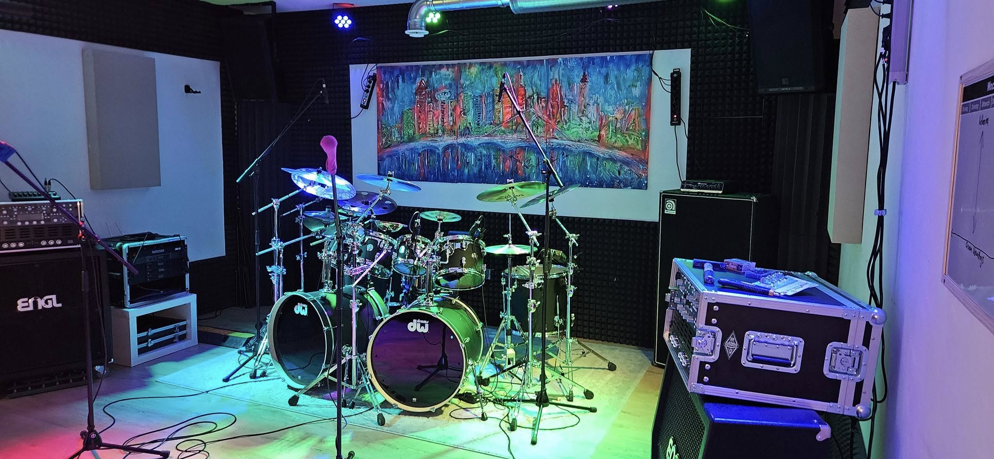 Speziell für Schlagzeuglehrer und deren Bedürfnisse haben wir mehrere Räume im Angebot. Vom Proberaum bis hin zum Tonstudio im Eigenbau ist hier alles zum Thema Musizieren möglich.